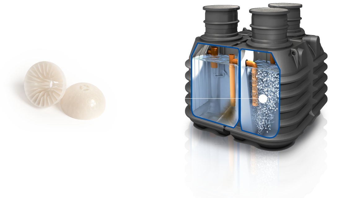 Die selbstreinigenden Picobells bestehen aus recycelbarem PE-Material und bieten eine besonders große Ansiedlungsfläche für Mikroorganismen – für maximale Reinigungsleistung.